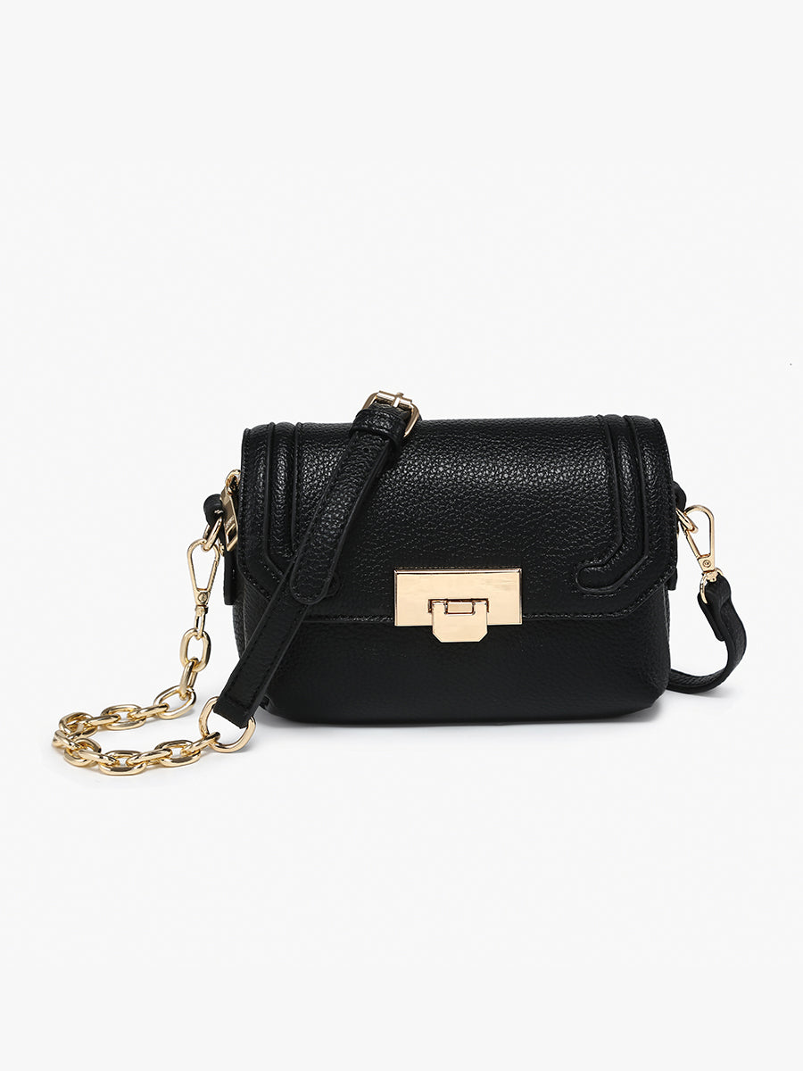 Adjustable/Removable Strap: Features chain detailing for a stylish finish and can be worn as a crossbody or shoulder bag.