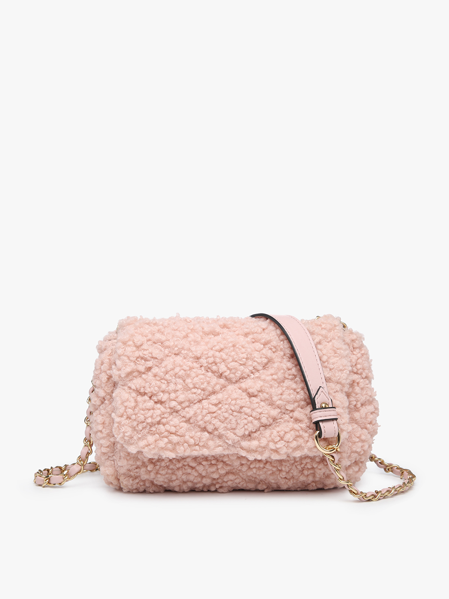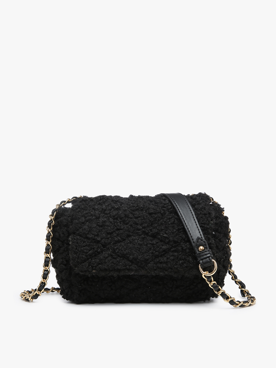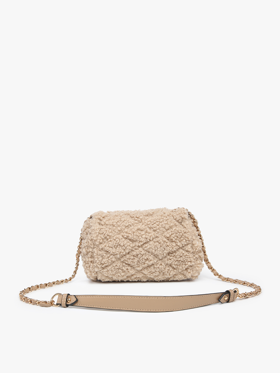 Meet Sofia, the epitome of snazzy elegance in the form of a quilted bag. Boasting a convenient snap closure and adorned with a luxurious gold chain strap, Sofia is as stylish as it is practical. Pockets galore adorn this bag, with slip and zip compartments ensuring your belongings stay safe and secure. Crafted from plush sherpa material, Sofia guarantees comfort and coziness wherever your adventures take you.