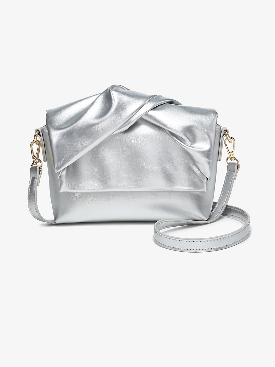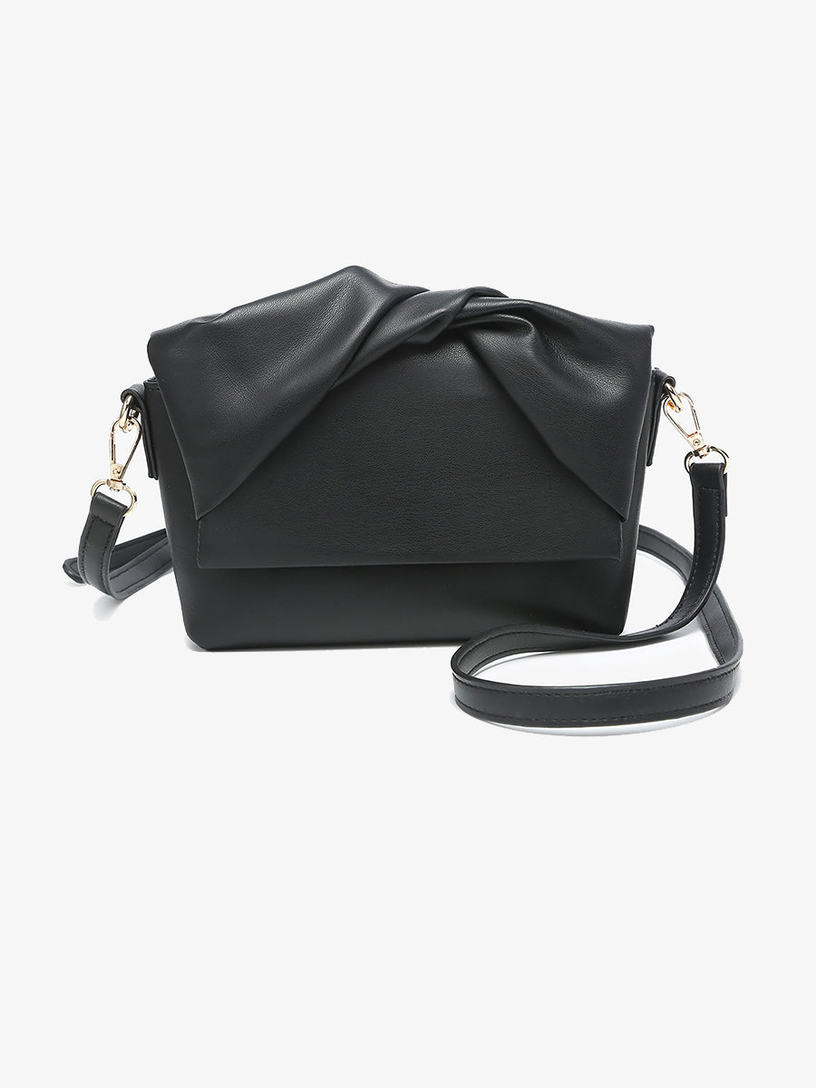 - Twist top handle crossbody clutch with scrunched flap design