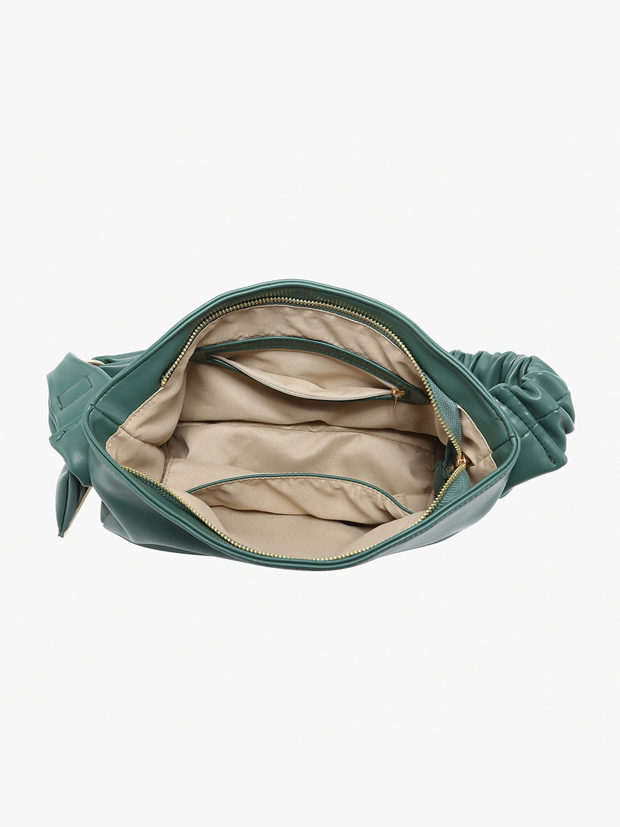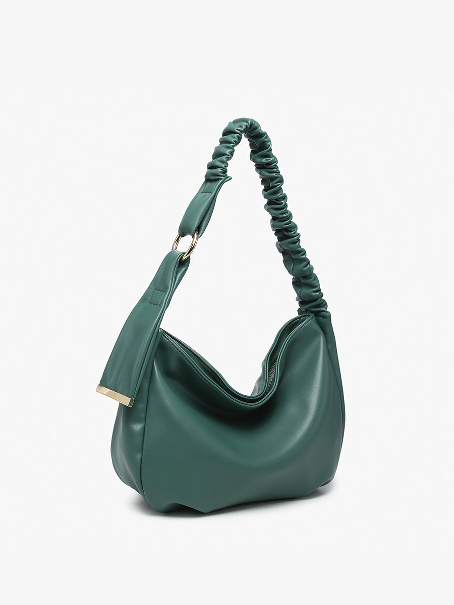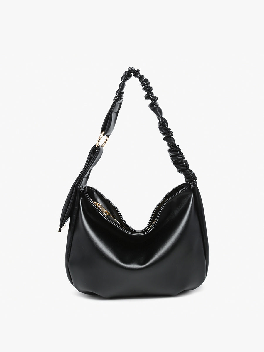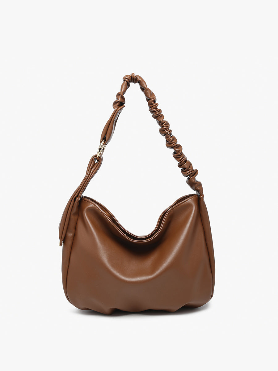 Ruched shoulder strap for a comfortable and fashionable carrying experience.