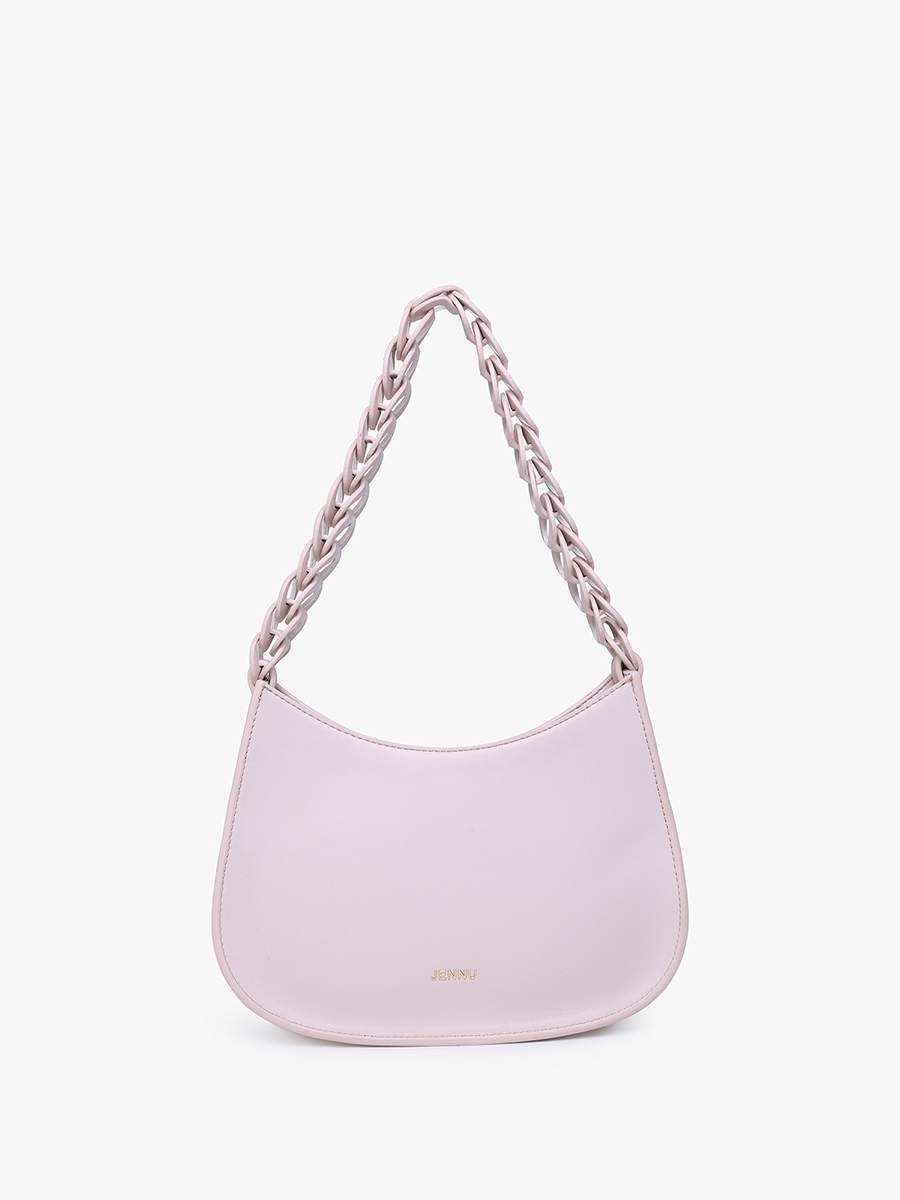 Experience the distinctive allure of Petra with its curved shape and chain-style strap, creating a unique look bound to turn heads. Unzip the top to reveal a spacious interior, complete with one slip pocket and one zippered pocket, offering ample space for your most important belongings. Petra not only captures attention with its chic design but also ensures comfort on your shoulder, making it an ideal accessory.